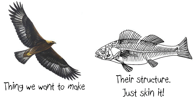 The structure is important. You can’t just stick a skin on a fish and make it a bird. How it works is always more important than how it looks.